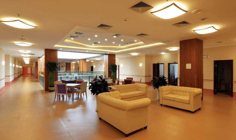 在设施建设方面,康梦圆国际老年公寓堪称行业典范。公寓总占地面积达18000平米,建筑面积21000平方米,其中7000平方米的园林区域成为老人休闲养生的绝佳场所,绿植繁茂、景致宜人,让老人在都市中也能亲近自然、陶冶身心。主体建筑采用“回”字形设计,蕴含着“天人合一”的传统理念,将古典建筑的雅致与现代建筑的便捷完美融合,既营造出赏心悦目 的居住氛围,更向每一位老人传递着“健康至上”的生活理念,为老人的个体生活与群体互动探寻更具意义的空间。
