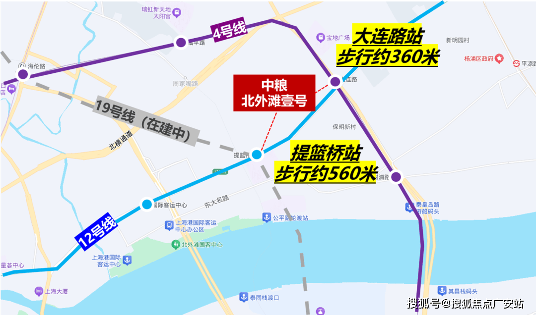 交通方面,项目周围环绕三条地铁,4、12号线号线(在建)提篮桥站。地铁出行到人