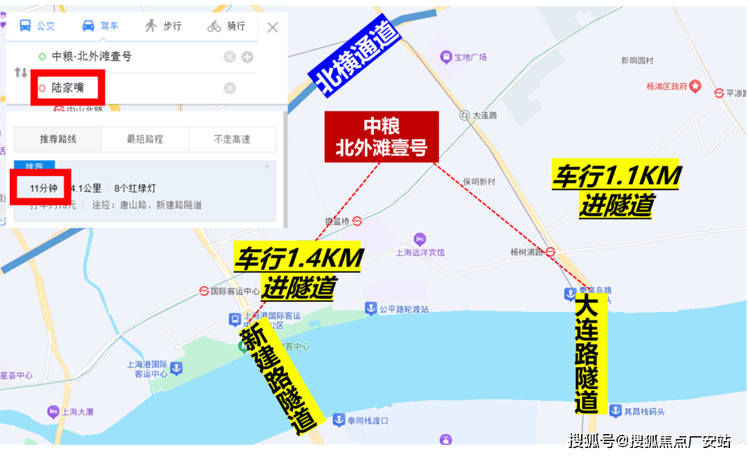 自驾也相当方便,项目往北方向就是北横通道,往南车行方向就是新建路隧道和大连路隧道直达浦东。